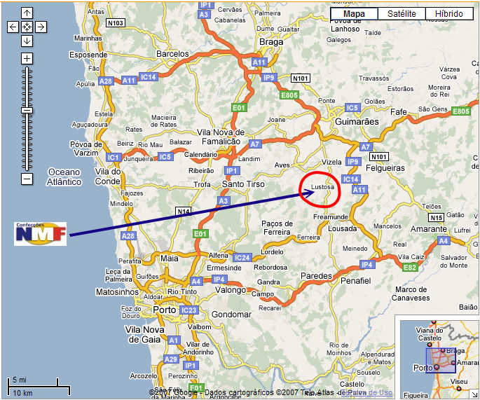 Estamos a cerca de 15 Km de Guimarães, 7 Km de Lousada, 9 Km de Paços de Ferreira, 7 Km de Vizela, 36Km do Porto, 38 Km de Braga, no entanto com as actuais vias de comuniação existentes e circundantes da nossa area de localização, é de fácil acesso, para cá chegar. Estamos situados na zona têxtil do Vale do Ave e do Vale do Sousa.